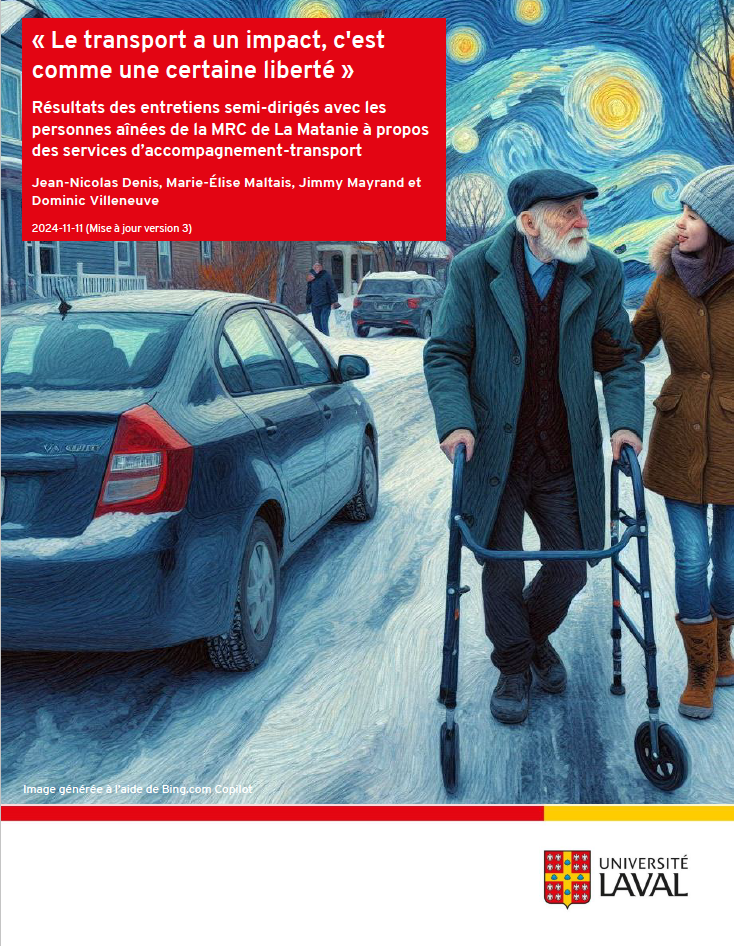 L’accessibilité à un système de transport adapté est essentielle à la mobilité et à la participation sociale active des personnes aînées. Pour plusieurs personnes ayant des limitations physiques ou cognitives, l’accompagnement-transport constitue le seul moyen de se déplacer.